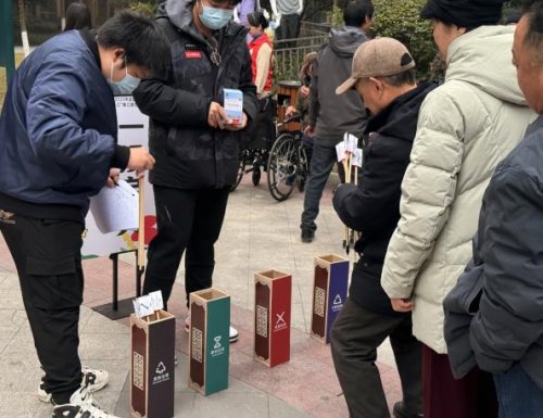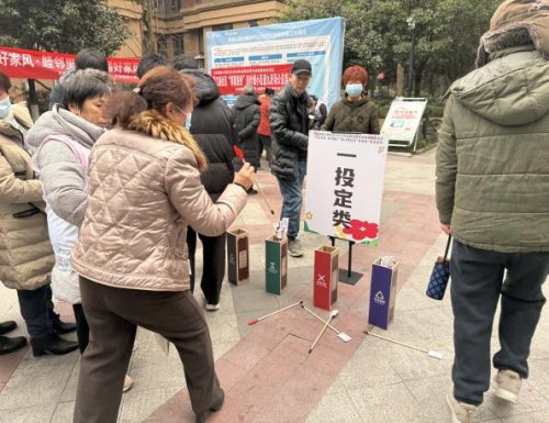 为增加活动趣味性与参与度,社区因地制宜设置了 “分类投壶” 互动游戏。工作人员将不同类型的 “垃圾模型” 作为投壶道具,居民需准确判断垃圾类别并投入对应标识的投壶中,投中次数达标即可获得小礼品。游戏现场人头攒动,大人小孩踊跃参与,在轻松愉快的氛围中巩固了分类知识。活动全程秉持 “厉行节约” 原则,游戏道具多采用废旧物品改造制作,宣传资料以电子档为主、纸质档为辅,避免资源浪费,用实际行动践行绿色环保理念。